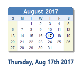 August 17, 2017 calendar