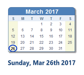 • March 26, 2017 was the 26th day of Lent (Christian Observance).