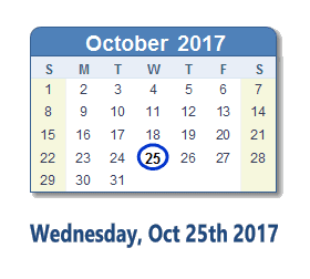 October 25, 2017 calendar